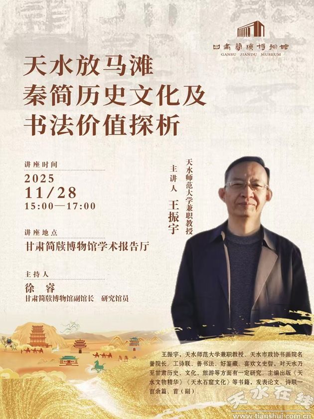 本報蘭州訊(新甘肅·甘肅日報記者白永萍)近日,甘肅簡牘博物館學(xué)術(shù)報告廳內(nèi)座無虛席,一場以“天水放馬灘秦簡歷史文化及書法價值探析”為題的專題講座在這里舉行。天水師范大學(xué)兼職教授王振宇受邀主講,帶領(lǐng)現(xiàn)場觀眾穿越歷史時空,深入解讀放馬灘秦簡這一秦文化瑰寶的歷史文化內(nèi)涵與書法藝術(shù)價值。