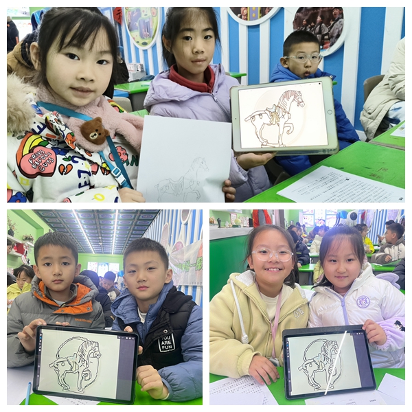 在實(shí)踐環(huán)節(jié),引導(dǎo)青少年探索藝術(shù)表達(dá)的多元可能,分兩組開(kāi)始創(chuàng)作,一組以傳統(tǒng)紙筆為媒介,細(xì)細(xì)勾勒陶舞馬陶俑的形態(tài)神韻,品味筆墨暈染的層次變化與手工線條的獨(dú)特質(zhì)感;另一組借助pad板繪工具盡情揮灑創(chuàng)意,靈活運(yùn)用數(shù)字畫(huà)筆便捷的色彩調(diào)配及靈活的圖層編輯功能。創(chuàng)作完成后,大家展示作品、分享感悟,宣教人員總結(jié)紙筆繪畫(huà)與pad板繪在創(chuàng)作邏輯、表現(xiàn)形式與審美體驗(yàn)上的異同,引導(dǎo)青少年辯證看待傳統(tǒng)與現(xiàn)代創(chuàng)作方式的獨(dú)特價(jià)值,學(xué)會(huì)取長(zhǎng)補(bǔ)短、兼容并蓄。