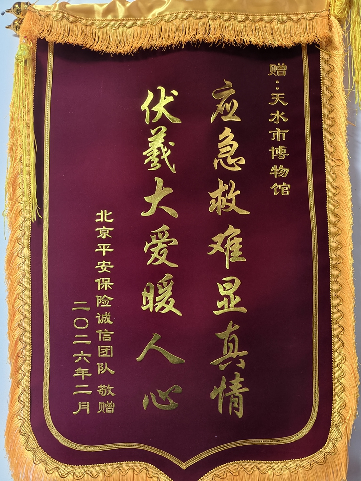 ——北京平安保險誠信團隊致信贈旗致謝天水市博物館