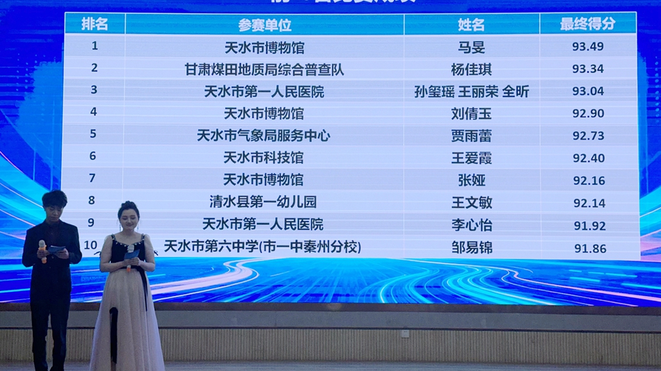天水市博物館講解員將在今后工作中再接再厲、再創(chuàng)佳績(jī),繼續(xù)講好天水文博故事,傳播科學(xué)文化知識(shí),為提升公眾科學(xué)文化素養(yǎng)、傳承弘揚(yáng)地方歷史文化貢獻(xiàn)更多力量!