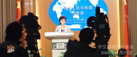 2006年11月28日下午,外交部發(fā)言人姜瑜主持例行記者會(huì)。