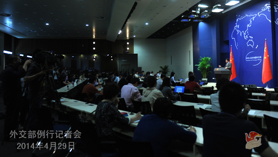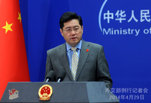 2014年4月29日,外交部發(fā)言人秦剛主持例行記者會(huì)。
