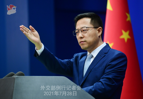 趙立堅(jiān):美方有關(guān)說法無視事實(shí),蓄意抹黑中方,干涉中國內(nèi)政,挑撥地區(qū)國家關(guān)系,其目的就是為了服務(wù)一己地緣政治私利。我們奉勸美方不要?jiǎng)虞m拿中國說事,多做有利于本地區(qū)和平穩(wěn)定的事。