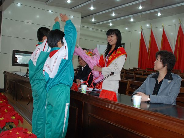 (縣委書記溫利平為張云霞頒發(fā)獎品)