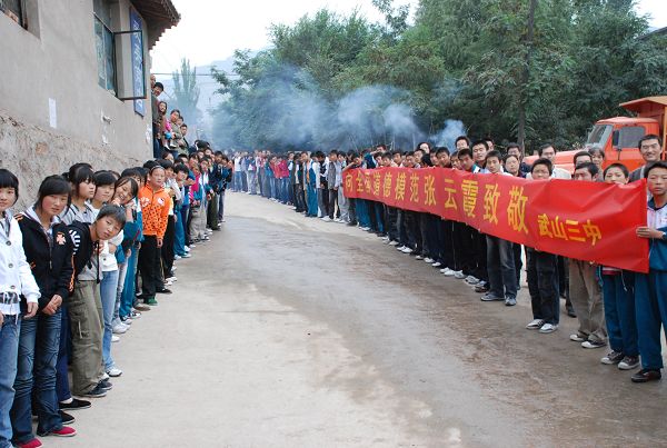 (武山縣石嶺村鄉(xiāng)親夾道歡迎家鄉(xiāng)好姑娘張?jiān)葡迹?/P>