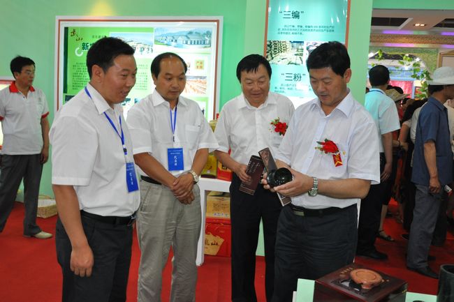 李文卿一行一邊參觀,一邊聽取相關(guān)負責(zé)人關(guān)于武山經(jīng)濟社會發(fā)展成果及各種推介產(chǎn)品的質(zhì)地性能、實用價值、市場前景等情況的詳細介紹。在蔬菜展臺前,李文卿說,武山是蔬菜大縣,也是全國無公害蔬菜生產(chǎn)基地,蔬菜以品質(zhì)優(yōu)、無污染、品種多而聞名,要繼續(xù)按照“建基地、扶龍頭、創(chuàng)品牌、活流通”的發(fā)展思路,不斷擴大面積,增加品種,提高品質(zhì),做好品牌認證,努力打造關(guān)中——天水經(jīng)濟區(qū)重要的蔬菜外銷基地。在武山柳編、草編展臺前,李文卿把柳編產(chǎn)品拿在手上仔細觀看后,坐到柳編椅上高興的對大家說:“武山柳編產(chǎn)品工藝精美、質(zhì)地結(jié)實、色澤優(yōu)雅、價格實惠,市場前景非常廣闊!崩钗那湟恍羞對玉器、豆制品、酒、醋等其它推介產(chǎn)品逐一進行了參觀。同時要求縣上進一步強化招商意識,提升服務(wù)水平,加大宣傳力度,全力以赴做好展銷產(chǎn)品的推介和城市形象的宣傳工作。