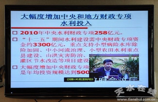 3月22日,由中央農(nóng)村工作領(lǐng)導(dǎo)小組辦公室和水利部聯(lián)合組織的2011年中央一號(hào)文件宣講團(tuán),在省政府視頻會(huì)議室宣講《中共中央國(guó)務(wù)院關(guān)于加快水利改革發(fā)展的決定》精神。縣委書(shū)記張建杰、縣長(zhǎng)索鴻賓、縣委副書(shū)記馬越垠、副縣長(zhǎng)李曉東及縣直相關(guān)部門(mén)負(fù)責(zé)人在武山分會(huì)場(chǎng)收看了報(bào)告。同時(shí)各鄉(xiāng)鎮(zhèn)和有收視條件的村組織干部、群眾收看了報(bào)告。