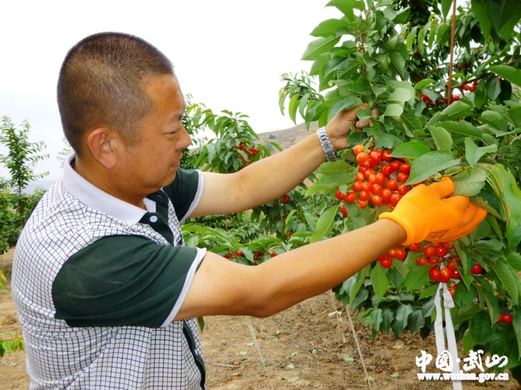 年近40歲的陳剛,初中畢業(yè)后,一直經(jīng)營水果生意,多年來,他看到甘谷、秦安的林果產(chǎn)業(yè)前景非常好,尤其櫻桃不僅口感好,還具有極高的營養(yǎng)保健價(jià)值,深受消費(fèi)者青睞,但他發(fā)現(xiàn)武山種植櫻桃的農(nóng)戶極少,而且都是傳統(tǒng)種植。敏銳洞察到這一商機(jī)后,2010年,陳剛決定在咀頭鄉(xiāng)半干旱山區(qū)示范種植美國大櫻桃,經(jīng)過多次調(diào)研,他把櫻桃種植作為增收富民的產(chǎn)業(yè)來抓,從天水高新農(nóng)業(yè)科技示范園區(qū)引進(jìn)苗木試種了100畝。