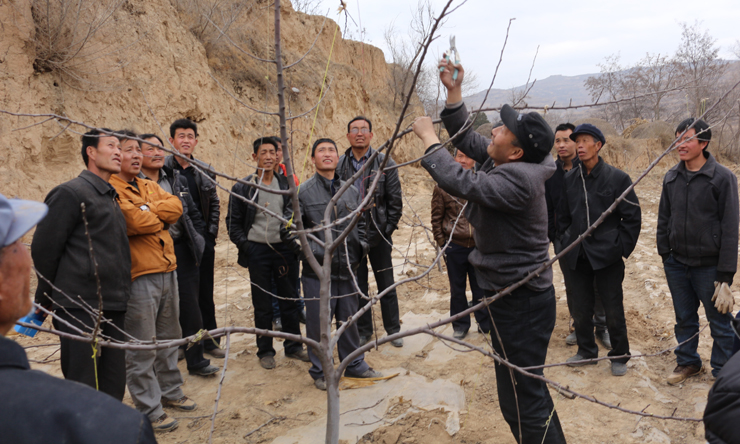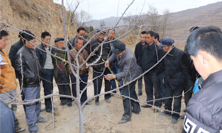 培訓(xùn)邀請了縣果業(yè)局高級農(nóng)藝師,采取集中培訓(xùn)、田間示范、發(fā)放資料等方式,從土肥水管理、整形修剪、花果管理、病蟲害防治等方面進(jìn)行了培訓(xùn),并現(xiàn)場進(jìn)行果樹修剪整形示范。