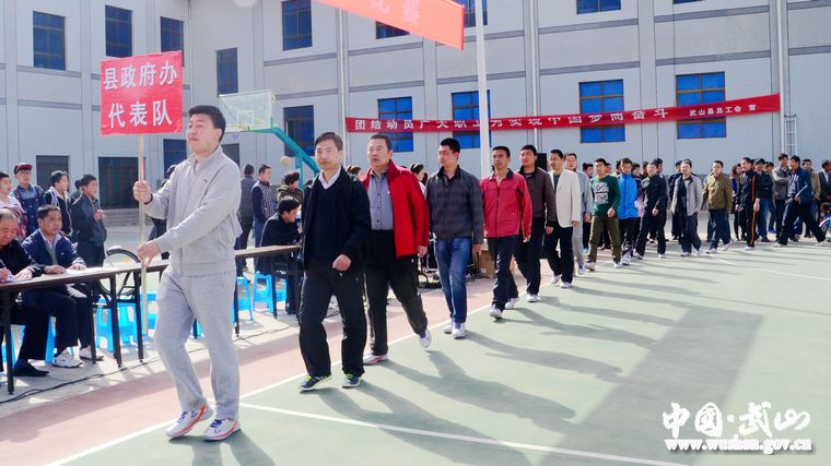 “五·一”國(guó)際勞動(dòng)節(jié)來(lái)臨之際,為豐富全縣廣大干部職工文體生活,給大家營(yíng)造一個(gè)健身強(qiáng)體的和諧氛圍,進(jìn)一步推動(dòng)全縣體育事業(yè)健康發(fā)展,4月12日,武山縣“安康杯”干部職工籃球賽在縣群眾文化中心開(kāi)賽?h人大常委會(huì)副主任、縣總工會(huì)主席蔡永彥出席開(kāi)幕式并講話(huà);籃球賽組委會(huì)成員、裁判員、教練員、運(yùn)動(dòng)員和各鄉(xiāng)鎮(zhèn)、縣直各部門(mén)、企事業(yè)單位有關(guān)人員共計(jì)300多人參加開(kāi)幕式!