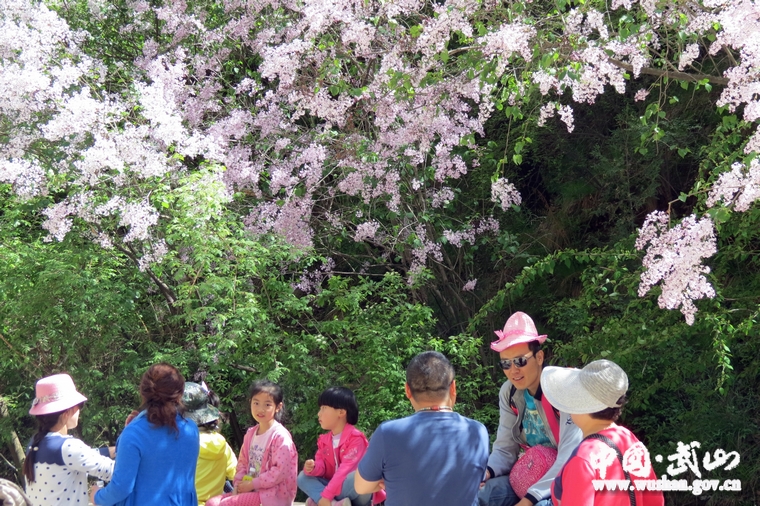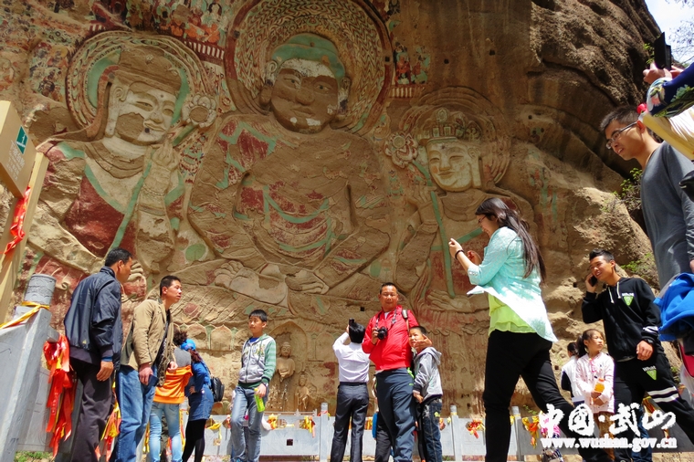今年“五一”期間,景區(qū)山林翠綠潔凈,鳥聲清脆悅耳,同時恰逢丁香花盛開,滿山遍野的丁香花香氣四溢,幽香撲鼻。游客們徜徉花海,漫步花徑,仿佛置身于世外桃源。來自全國各地的游人成群結隊,進福門、走福路、過福橋、登福山,祈福氣,覽摩崖大佛,觀丹霞奇景,領略佛道宗教文化。