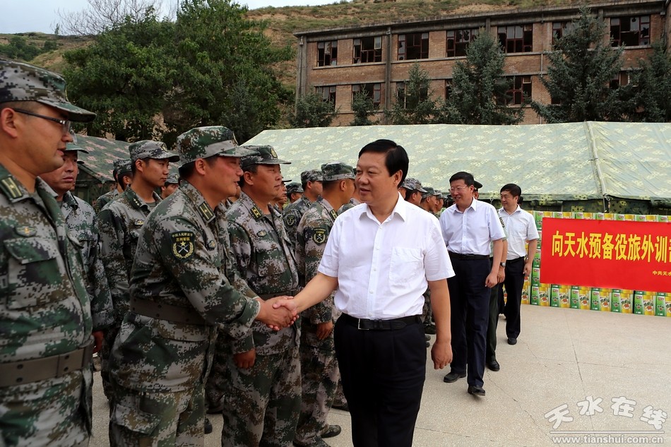8月22日下午,天水市委副書記、市長楊維俊赴武山縣四門鎮(zhèn),代表市委、市政府和天水軍分區(qū),看望慰問了正在外訓(xùn)的天水陸軍預(yù)備役步兵旅全體官兵,為他們送去了慰問品,并與外訓(xùn)部隊(duì)官兵座談,共敘軍民魚水深情。 市委副書記、市政協(xié)主席宋尚有,市委常委、秘書長蔣曉強(qiáng),市委常委、天水軍分區(qū)司令員李建中參加慰問。