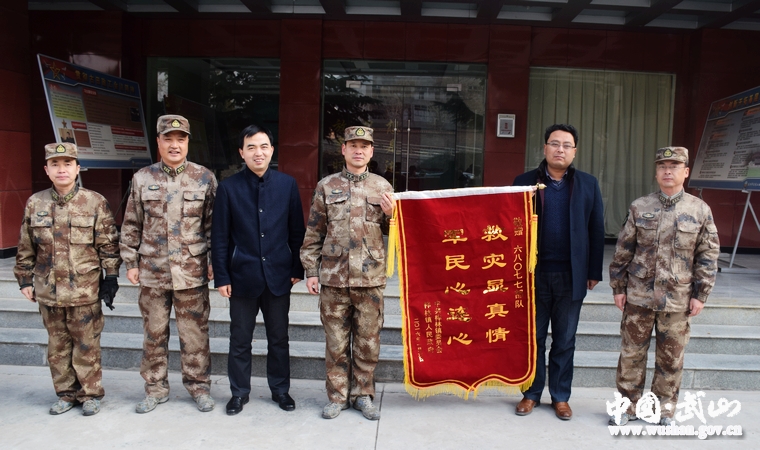 調研中,樺林鎮(zhèn)黨委、政府代表樺林鎮(zhèn)人民為二分庫官兵贈送錦旗一面,對二分庫官兵在前段時間幫助樺林鎮(zhèn)寨子村村民救援火災事件表示衷心感謝,并向全體部隊官兵表示新年的祝福。