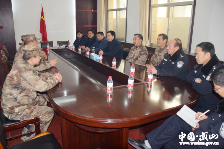 1月6日,武山縣委常委、政法委書記王志軍,縣委常委、武裝部部長趙輝先后深入到縣武警中隊、五七四處、二分庫調研全縣雙擁工作,看望慰問部隊官兵,并就有關地方與部隊銜接配合事宜進行了座談交流。