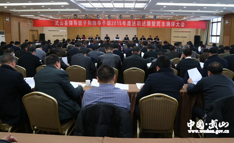 在召開的武山縣領(lǐng)導(dǎo)班子和領(lǐng)導(dǎo)干部2015年度述職述廉暨民主測(cè)評(píng)大會(huì)上,蒲軍作了講話;縣委書記索鴻賓主持會(huì)議并代表縣委常委班子作述職述廉報(bào)告和個(gè)人述職述廉報(bào)告,縣委副書記、縣長馬勤學(xué)代表縣政府班子作述職述廉報(bào)告和個(gè)人述職述廉報(bào)告。