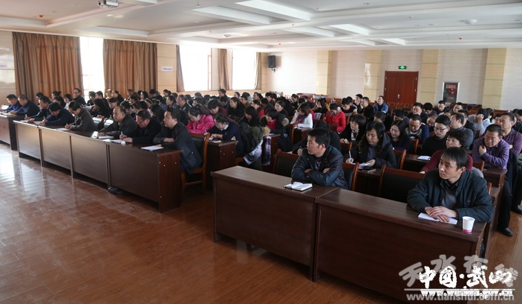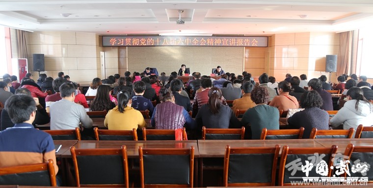 1月4日,武山縣副縣長高春霞為衛(wèi)計、民政、食藥監(jiān)等部門黨員干部宣講十八屆六中全會精神。衛(wèi)計、民政、食藥監(jiān)等部門黨員干部共計100余人聆聽了宣講報告會。