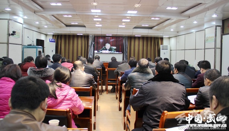1月18日,武山縣組織收聽收看全省環(huán)境保護工作電視電話會議。副縣長聶衛(wèi)東,縣環(huán)委會成員單位及城關(guān)鎮(zhèn)、洛門鎮(zhèn)負責(zé)人參加了會議。