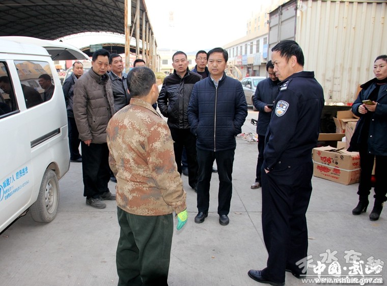為了進(jìn)一步加強(qiáng)城區(qū)秩序管理,確保全縣人民在清新、整潔的環(huán)境中度過一個(gè)喜慶、祥和的節(jié)日。1月22日,武山縣委常委、副縣長(zhǎng)何敬忠?guī)ьI(lǐng)縣建設(shè)、公安、安監(jiān)、執(zhí)法、工商、食藥監(jiān)、運(yùn)管、市場(chǎng)中心等部門負(fù)責(zé)人,深入城區(qū)主干道、渭北綜合市場(chǎng)等地,督查春節(jié)前城區(qū)環(huán)境秩序綜合整治工作。