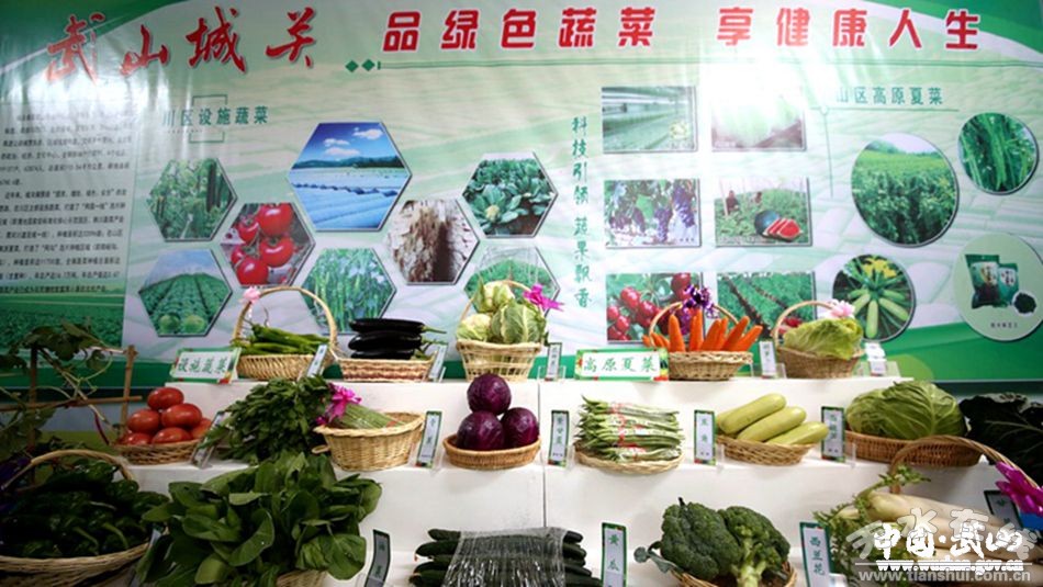 整個(gè)展館布置以“品綠色蔬菜、享健康人生”為主題,精心挑選陳列了紫甘藍(lán)、黃瓜、西紅柿等川區(qū)設(shè)施蔬菜和架豆、胡蘿卜等高原夏菜20余種,突出特色,全面展示了城關(guān)鎮(zhèn)蔬菜產(chǎn)業(yè)發(fā)展所取得的新成效。