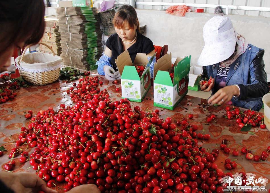 櫻桃是一種經(jīng)濟型作物,也是時令性水果,拓寬銷售渠道就是增加收入。除了傳統(tǒng)的“農(nóng)戶+消費者”銷售模式外,該基地還以發(fā)達的網(wǎng)絡(luò)平臺和便捷的現(xiàn)代物流為依托,主打“農(nóng)戶+網(wǎng)絡(luò)平臺+消費者”的電商銷售模式。記者在櫻桃基地倉庫看到,郵政快遞公司工作人員直接在倉庫蹲點裝貨,早上裝好的貨,下午就可以寄送出去!胺奖憧旖,還能免一斤的郵費,優(yōu)惠不少,每天平均銷售額在七八千元左右!睓烟一刎撠(zé)人馬清緒樂呵呵地說。