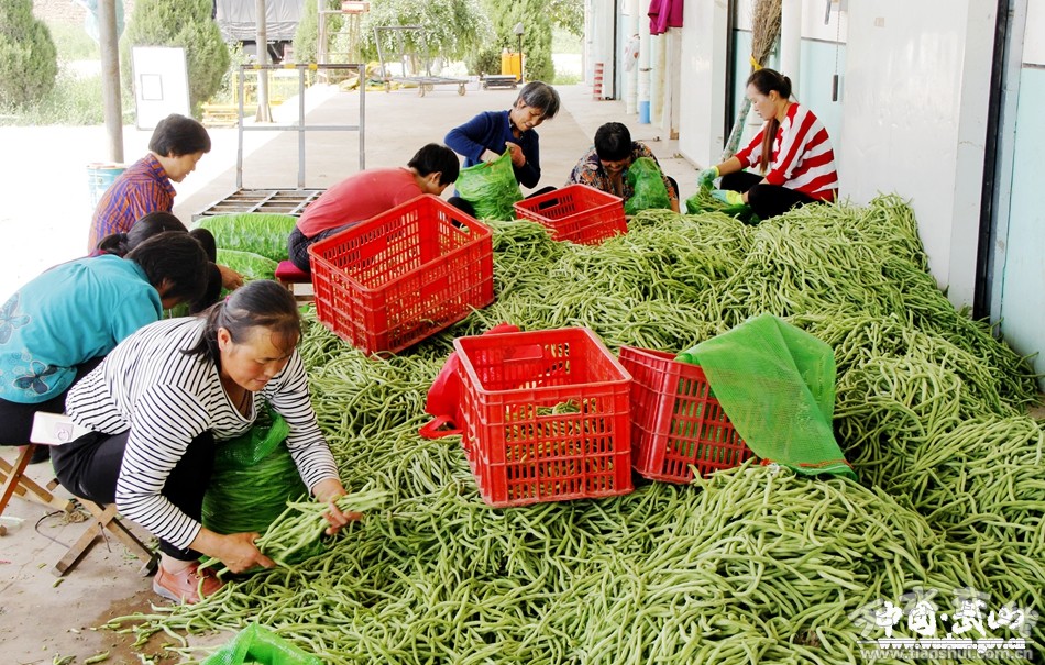 在洛門青露果蔬開發(fā)有限公司庫(kù)房,我們看到,二三百名婦女正在歸納分揀豆角。一等品裝在紙箱中,二等品裝在塑料袋中,三等品裝在編織袋中。與工作人員交談后,我們知道了劃分等級(jí)的依據(jù)——豆角以條直、條順、條細(xì)、沒有疤痕、豆角中的豆子沒有凸出,顏色綠中泛白泛黃者為佳,泛青色次之。分揀包裝后的大多都外銷了,在西安的超市中能賣到6元錢一斤,成都、鄭州的超市中能賣到8元錢一斤。分揀豆角的婦女是計(jì)量工資,高掛的太陽(yáng)阻擋不了她們的工作熱情,就像在公路上看到的宣傳語(yǔ),“不忘初心跟黨走,擼起袖子加油干!