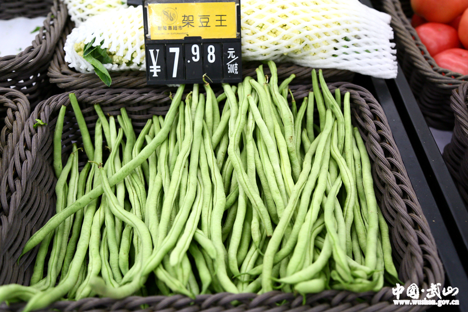 新隆嘉超市沈陽遼沈路店庫管紹榮國指著蔬菜零售區(qū)的架豆告訴記者:“這個架豆是甘肅武山縣產(chǎn)的,批發(fā)到盛發(fā)市場,我們從盛發(fā)采購的,顧客反響很好,品質(zhì)好,口感不錯。今天一斤的價格是7.98元,一天能賣十箱左右!
