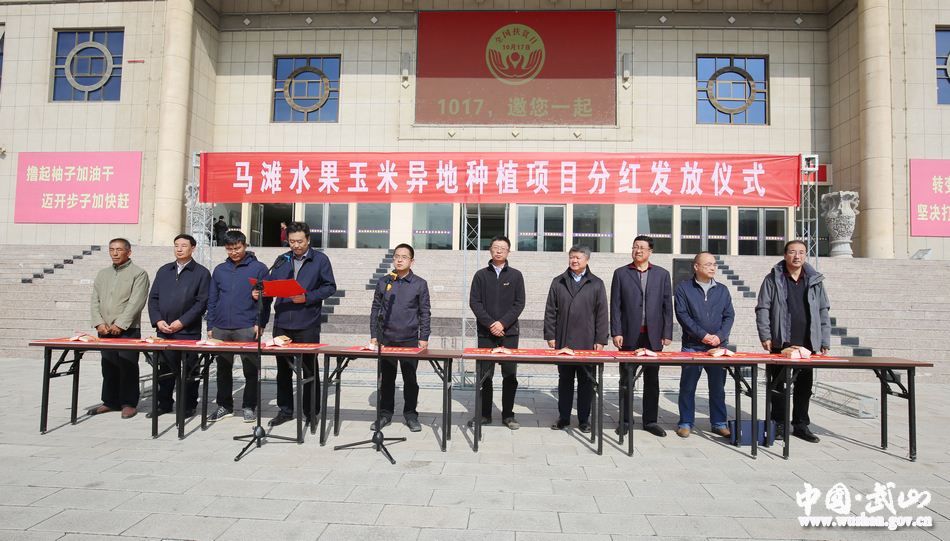 10月17日,在全國第五個扶貧日,武山縣舉辦馬灘水果玉米異地種植項目2018年分紅發(fā)放儀式,為全縣1811戶2000人發(fā)放紅利800萬元。甘肅省金控集團投資部經理葉榮,甘肅中美國玉水果玉米科技開發(fā)有限公司董事長楊天龍,武山縣委副書記閆斌出席分紅儀式并講話,縣政府副縣長馬維杰及各鄉(xiāng)鎮(zhèn)、縣直有關部門負責同志、入股貧困戶代表參加分紅儀式。分紅儀式由縣政府副縣長令軍強主持。