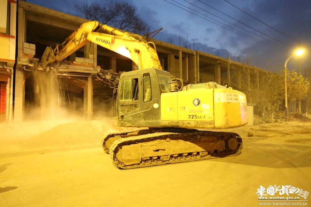 12月12日,武山縣在多次勸阻無效、通告無效的情況下,組織縣公安、國(guó)土、建設(shè)、環(huán)保、安監(jiān)、執(zhí)法、房管、交警、消防、司法、供電等單位和城關(guān)鎮(zhèn)工作人員,依法依規(guī)對(duì)城區(qū)新興路違法建筑進(jìn)行了強(qiáng)制拆除。強(qiáng)行拆除違法建筑5戶,拆除面積約2000平方米。拆除現(xiàn)場(chǎng),縣委、縣政府領(lǐng)導(dǎo)親自協(xié)調(diào),靠前指揮,各相關(guān)部門和單位分工明確,責(zé)任到人,聯(lián)動(dòng)配合,整個(gè)拆除過程法律程序到位,執(zhí)法秩序井然。