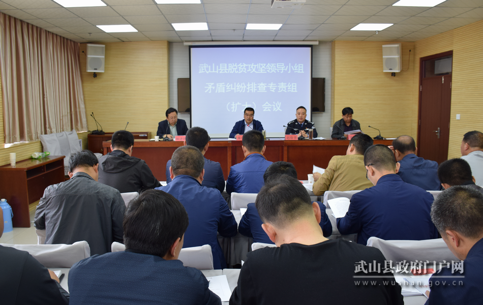 4月25日,武山縣委常委、政法委書記林如海主持召開武山縣脫貧攻堅(jiān)領(lǐng)導(dǎo)小組矛盾糾紛排查專責(zé)組擴(kuò)大會議,各鄉(xiāng)鎮(zhèn)、專責(zé)組成員單位及縣直有關(guān)部門負(fù)責(zé)同志參加會議。