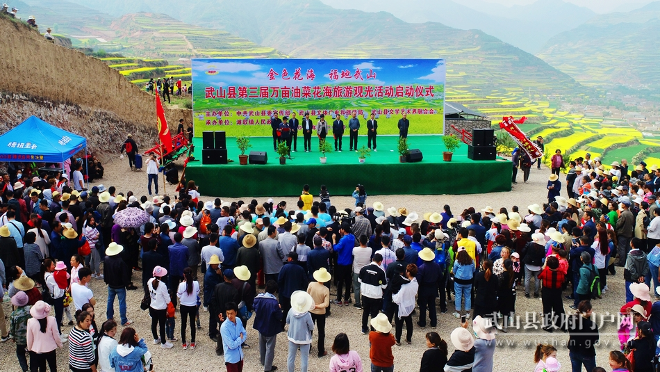 暮春時節(jié),武山灘歌鎮(zhèn)萬畝油菜花競相綻放,一田田金燦燦的金黃鋪天蓋地,流金溢彩,氣勢磅礴,紛至沓來的游人點綴在花海中,構(gòu)成了一幅美輪美奐的壯美畫卷。