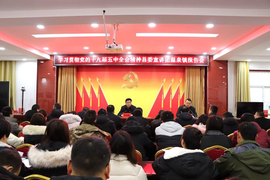 12月29日,武山縣委宣講團(tuán)成員、縣人大常委會(huì)主任張璞銀在溫泉鎮(zhèn)作黨的十九屆五中全會(huì)精神宣講報(bào)告。溫泉鎮(zhèn)機(jī)關(guān)全體干部、學(xué)區(qū)和衛(wèi)生院負(fù)責(zé)人,部分村干部共計(jì)70人聆聽了宣講。