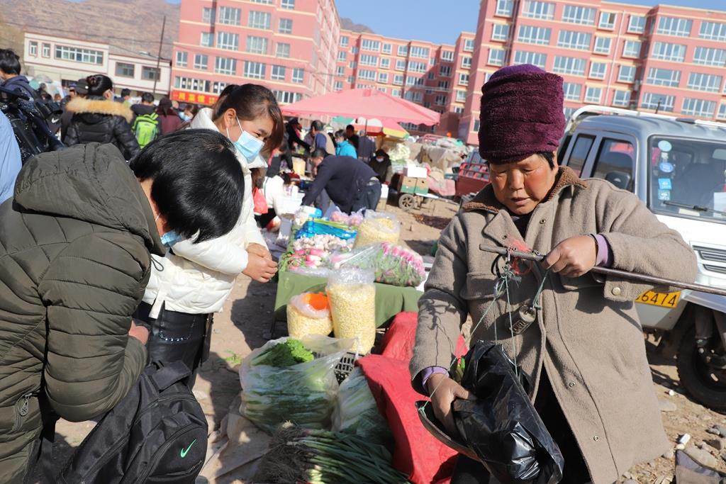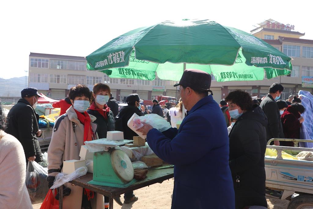 武山縣融媒體中心2月5日訊(記者 張丁香 車彤瑤 管秋勇 郭韻 實(shí)習(xí)記者 李東陽(yáng))臘月二十二這一天,是灘歌鎮(zhèn)的逢集日。一大早,十里八村前來(lái)趕集的人們就把集市圍了個(gè)水泄不通,喜慶的春聯(lián)、新鮮的蔬菜、各色的糖果……各種攤位長(zhǎng)龍似的依次擺開,整個(gè)市場(chǎng)充滿了喜慶的節(jié)日氣氛。