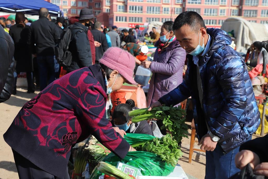 年貨集市上的消費(fèi)方式也在與時(shí)俱進(jìn)。以前的農(nóng)村市場(chǎng),很多人手里都攥著花花綠綠的零錢,買主多了商販就有些應(yīng)接不暇,而現(xiàn)在更多的人選擇掃碼支付,方便了買賣雙方。與此同時(shí),隨著人們對(duì)健康的追求,年夜飯更加注重葷素搭配,過(guò)去過(guò)年人們選擇大魚大肉來(lái)改善生活,現(xiàn)在蔬菜、水果成了人們置辦年貨的“新寵”,頗受顧客歡迎。