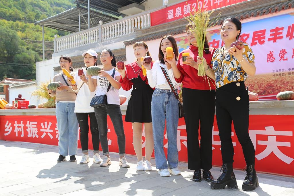“今天來(lái)到溫泉鎮(zhèn),為我們家鄉(xiāng)的農(nóng)產(chǎn)品代言,希望通過(guò)直播為家鄉(xiāng)多做宣傳,把家鄉(xiāng)的農(nóng)副產(chǎn)品推銷(xiāo)出去。我們?yōu)檗r(nóng)民豐收節(jié)代言!蔽渖酱寤ㄖ辈F(tuán)成員康云萍在現(xiàn)場(chǎng)通過(guò)電商平臺(tái)直播推廣家鄉(xiāng)農(nóng)特產(chǎn)品,促進(jìn)特色農(nóng)產(chǎn)品線(xiàn)上線(xiàn)下銷(xiāo)售,希望家鄉(xiāng)的特色農(nóng)產(chǎn)品也能搭上電商快車(chē),為家鄉(xiāng)產(chǎn)業(yè)發(fā)展提速。