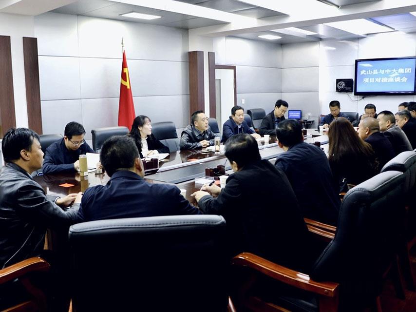 武山縣融媒體中心10月20訊 (記者 康正東 董世雄) 10月20日,縣委書記王新強(qiáng),縣委副書記、代縣長(zhǎng)王志成與四川中大集團(tuán)董事長(zhǎng)馮世斌對(duì)接文旅產(chǎn)業(yè)項(xiàng)目合作事宜?h委常委、宣傳部部長(zhǎng)胡麗霞介紹武山縣情和文化旅游發(fā)展情況,縣委常委、統(tǒng)戰(zhàn)部長(zhǎng)令軍強(qiáng),副縣長(zhǎng)、縣公安局局長(zhǎng)李森及縣直有關(guān)部門負(fù)責(zé)人參加。