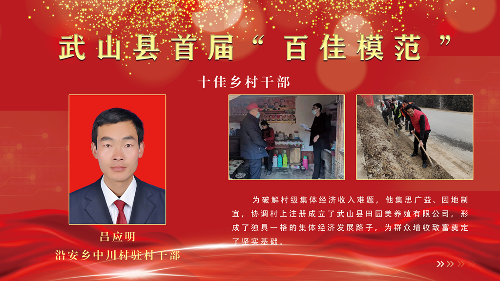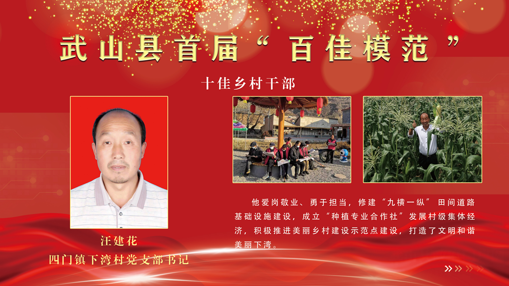 編者按:2021年,武山縣堅(jiān)持以習(xí)近平新時(shí)代中國(guó)特色社會(huì)主義思想為指導(dǎo),緊扣“三新一高”的要求,大力培育和踐行社會(huì)主義核心價(jià)值觀,涌現(xiàn)出了一大批作出新貢獻(xiàn)、取得新業(yè)績(jī)、展現(xiàn)新風(fēng)貌的先進(jìn)典型。為樹立典型、弘揚(yáng)正氣、凝聚力量,引導(dǎo)和激勵(lì)廣大干部群眾向先進(jìn)模范學(xué)習(xí),爭(zhēng)做崇高道德的踐行者、文明風(fēng)尚的維護(hù)者、美好生活的創(chuàng)造者,縣委宣傳部、縣融媒體中心聯(lián)合推出【百佳模范】專題欄目,全面展示“百佳模范”先進(jìn)事跡和感人故事,為加快建設(shè)經(jīng)濟(jì)繁榮、城鄉(xiāng)美麗、生態(tài)宜居、治理高效、人民幸福的現(xiàn)代化新武山凝聚強(qiáng)大的精神動(dòng)力。
