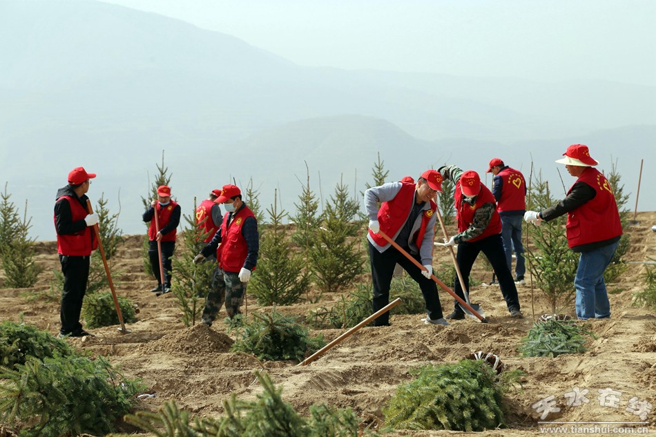植樹現(xiàn)場,一派熱火朝天的勞動場面,大家三五人一組,分工合作、默契配合,扶正樹苗、揮鍬填土、提桶澆水,到處都是忙碌的身影,一排排新栽樟子松、云杉等樹苗迎風(fēng)挺立,為初春的武山大地增添了一抹生機(jī)。王新強(qiáng)等縣四大組織領(lǐng)導(dǎo)一邊植樹,一邊詳細(xì)了解全縣植樹造林建園等情況,叮囑大家要增強(qiáng)愛綠護(hù)綠意識,搶抓春季植樹的好時機(jī),迅速掀起植樹造林高潮,在全社會營造“攜手植綠興綠,共建美麗家園”的良好氛圍;要科學(xué)合理配置樹種,加強(qiáng)技術(shù)指導(dǎo)和后期管護(hù),確保造一片、活一片、成林一片,努力建設(shè)生態(tài)宜居美麗武山。
