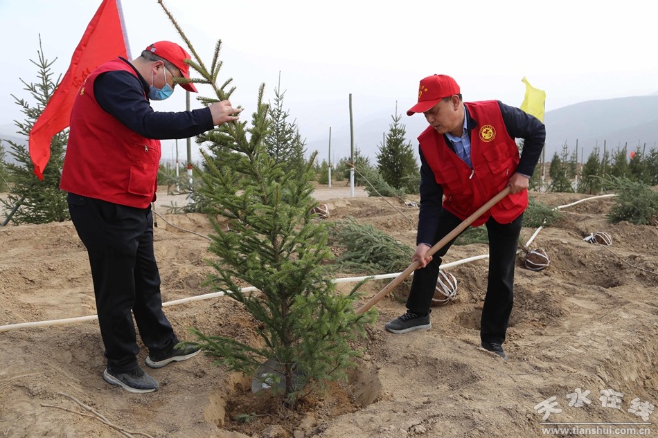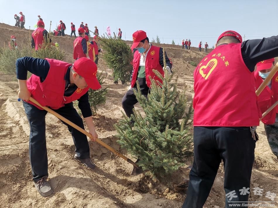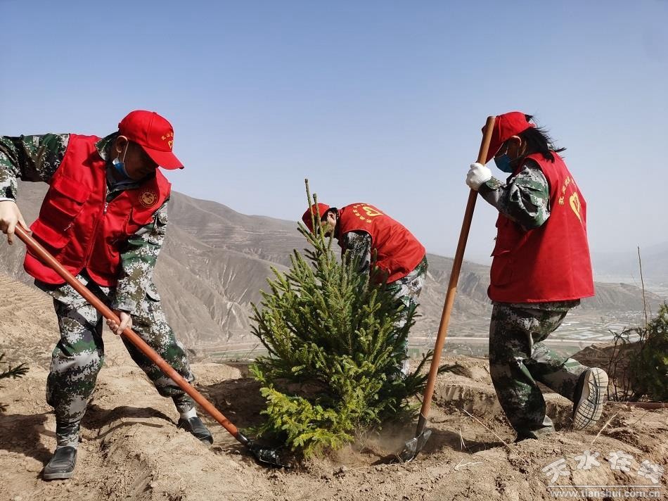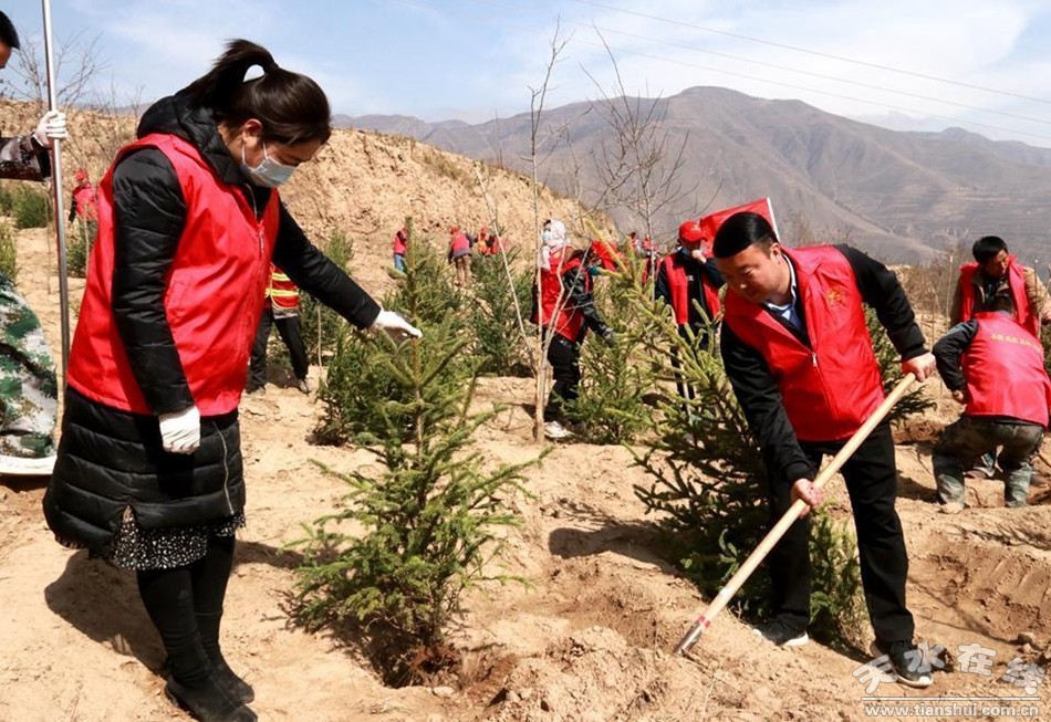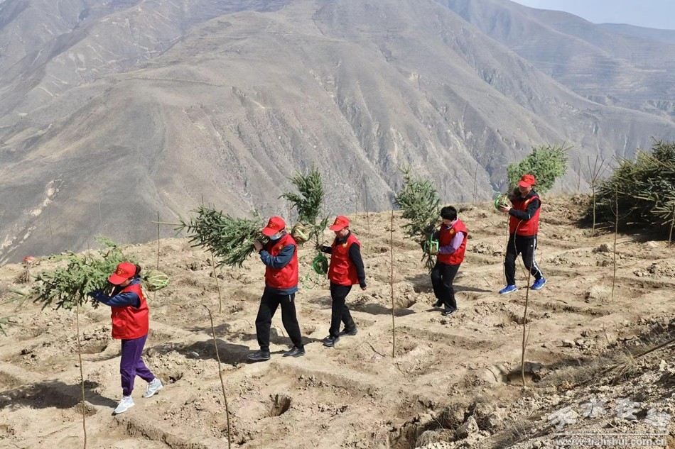 植樹添綠人人有責(zé)。3月15日這天,縣水務(wù)局黨組成員、機(jī)關(guān)各股室和局屬各站所120多人參加植樹勞動(dòng)。大家兩人一組,扶苗、培土、踩實(shí)、澆水……圓滿完成了1230 余株云杉和刺槐的栽植任務(wù)。植樹護(hù)綠,關(guān)愛山川河流,水利職工用實(shí)際行動(dòng)為武山大地再增新綠,播下希望的種子。