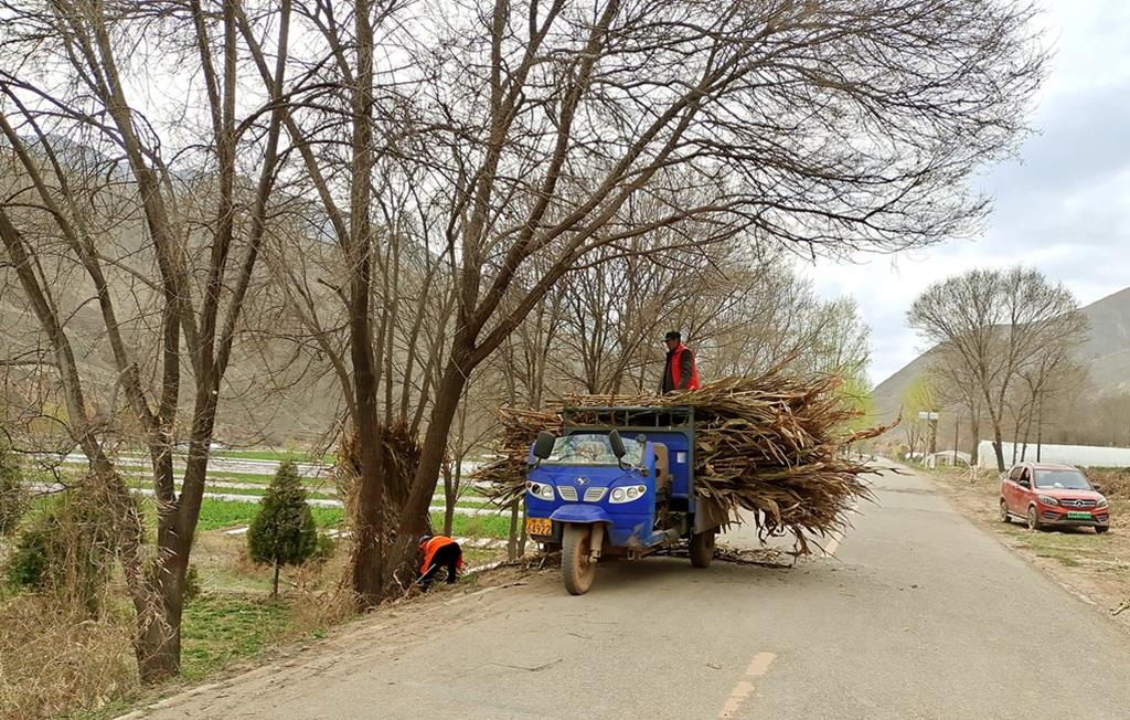 在高樓村,鎮(zhèn)村干部、黨員群眾以及村上公益性崗位人員齊發(fā)力,補(bǔ)植下旱柳、云杉等行道樹(shù),對(duì)道路兩側(cè)亂堆亂放的柴草、秸稈、建筑物料等進(jìn)行規(guī)整清理。村民陳牛成說(shuō):“這樣一弄整潔多了,等樹(shù)長(zhǎng)大了也能乘涼了。”