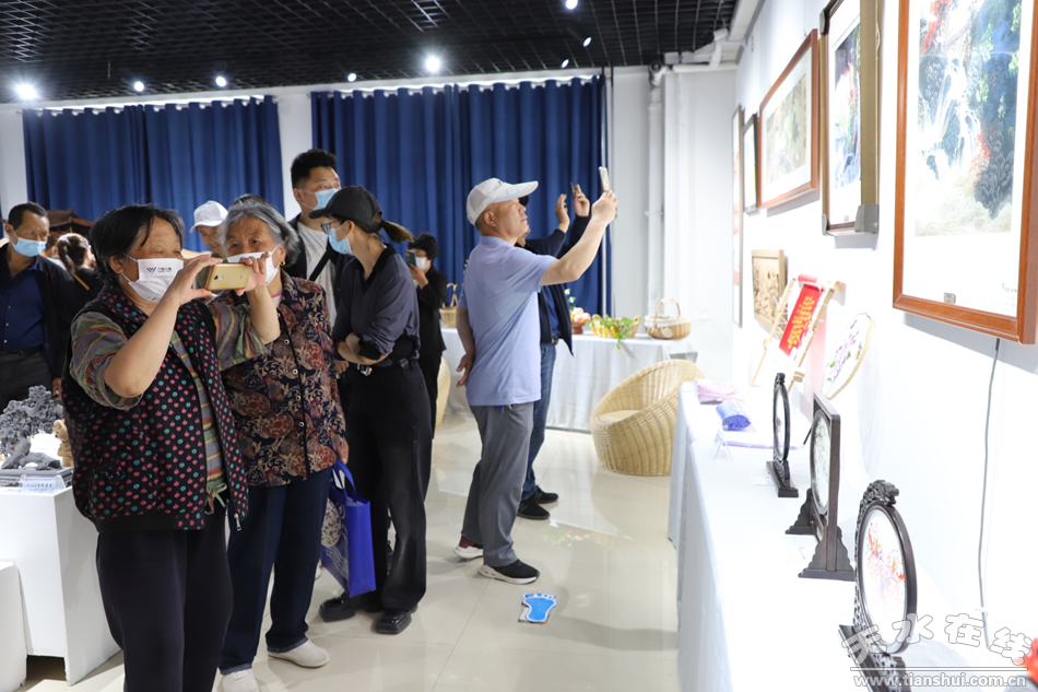 活動儀式結(jié)束后,與會領(lǐng)導(dǎo)與現(xiàn)場干部群眾在做好疫情防控工作的同時,有序參觀了武山“十有”攝影、非遺、奇石、書畫展覽活動。