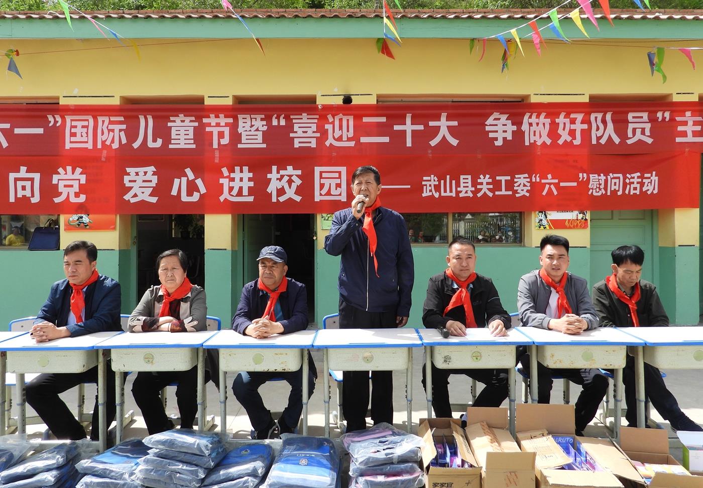 在六一兒童節(jié)來臨之際,武山縣委常委、組織部部長(zhǎng)、縣關(guān)工委主任宋昌華,縣政協(xié)原主席、縣關(guān)工委常務(wù)副主任頡衛(wèi)星,縣政協(xié)原副主席、縣關(guān)工委副主任趙改萍,縣政協(xié)原黨組成員、縣關(guān)工委副主任周幸生帶領(lǐng)縣委組織部、團(tuán)縣委、縣教育局和相關(guān)鄉(xiāng)鎮(zhèn)同志先后到洛門第二小學(xué)、楊河鎮(zhèn)王河小學(xué)、馬力鎮(zhèn)石峰小學(xué)、四門鎮(zhèn)侯堡小學(xué)、向陽(yáng)幼兒園進(jìn)行節(jié)日慰問。
