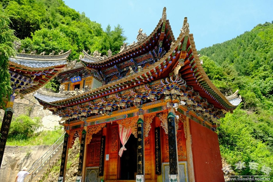 武山慈云寺,位于龍臺鎮(zhèn)董莊村境內(nèi),坐落在西秦嶺南麓太皇山頭溝的半山腰上,幽幽古寺藏深山。山上植被茂密,山間泉流、瀑布常年不息。林間有羌活、豬苓、菖蒲等40多種野生藥材,還有錦雞、麋鹿、香獐等20多種國家保護(hù)動物,溪流中還有國家少見的保護(hù)動物山溪鯢。靜坐林間,能聽松濤陣陣,溪流淙淙;循路游覽,可睹“七峰蓮花抱古寺,五霞彩虹映佛光”的佛寺勝景。