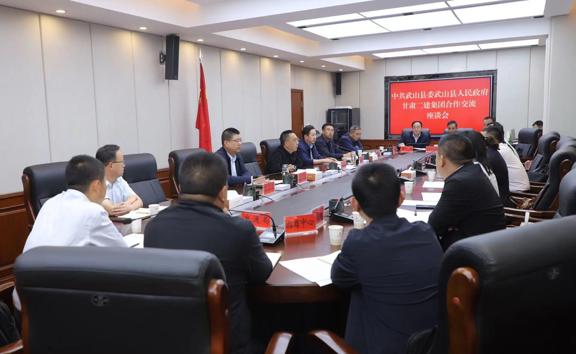9月14日,武山縣委縣人民政府與甘肅二建集團合作交流座談會在武山縣召開?h委書記王新強,甘肅二建集團黨委書記、董事長張立天出席會議并講話,縣委副書記、縣長王志成主持會議。縣委常委、副縣長趙百祥,副縣長凌鵬亮,縣直相關部門主要負責人參加會議。
