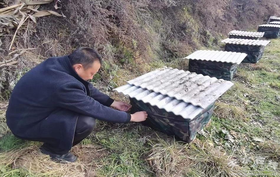 給蜜蜂做“保暖屋”的一幕,也在四門鎮(zhèn)大蒿、水洞、麥山、侯堡、周灣等村紛紛上演,他們采取各種方法給蜂箱穿上上了厚厚的“保暖衣”。