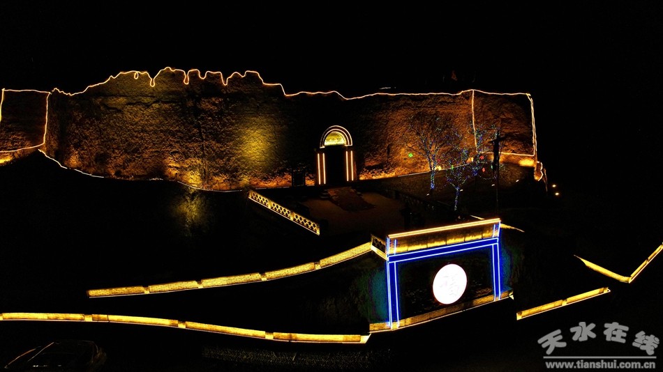 夜幕降臨,華燈初上。璀璨奪目的迎春燈飾把武山城區(qū)裝飾一新,“中國紅”成為武山街頭冬日里最亮眼的底色。城市里張燈結(jié)彩、街道上車水馬龍、人群中歡聲笑語構(gòu)成了一幅熱情紅火的新春畫卷,濃濃的年味氤氳在縣城的每一個角落。廣場上,華燈璀璨,光影閃爍,熙熙攘攘的游人在旖旎的燈光中或漫步,或拍照,徘徊于流彩的燈海間,看著繽紛的七彩華燈,別有一番情趣。漫步“一線三堡九灣”,有著200多年歷史的古堡變得五彩斑斕,在夜色中顯得熠熠生輝,光彩奪目。