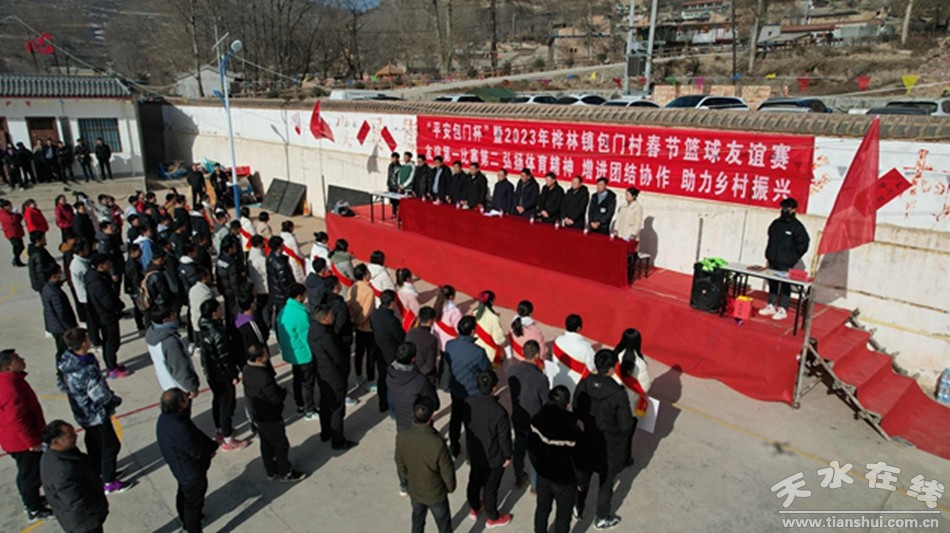 上午九點,簡單的開幕式后,各代表隊抽簽,“平安包門杯”暨2023春節(jié)籃球友誼聯(lián)賽正式開打,第一場比賽東道主出場,村民們自然不會錯過加油吶喊的機會。