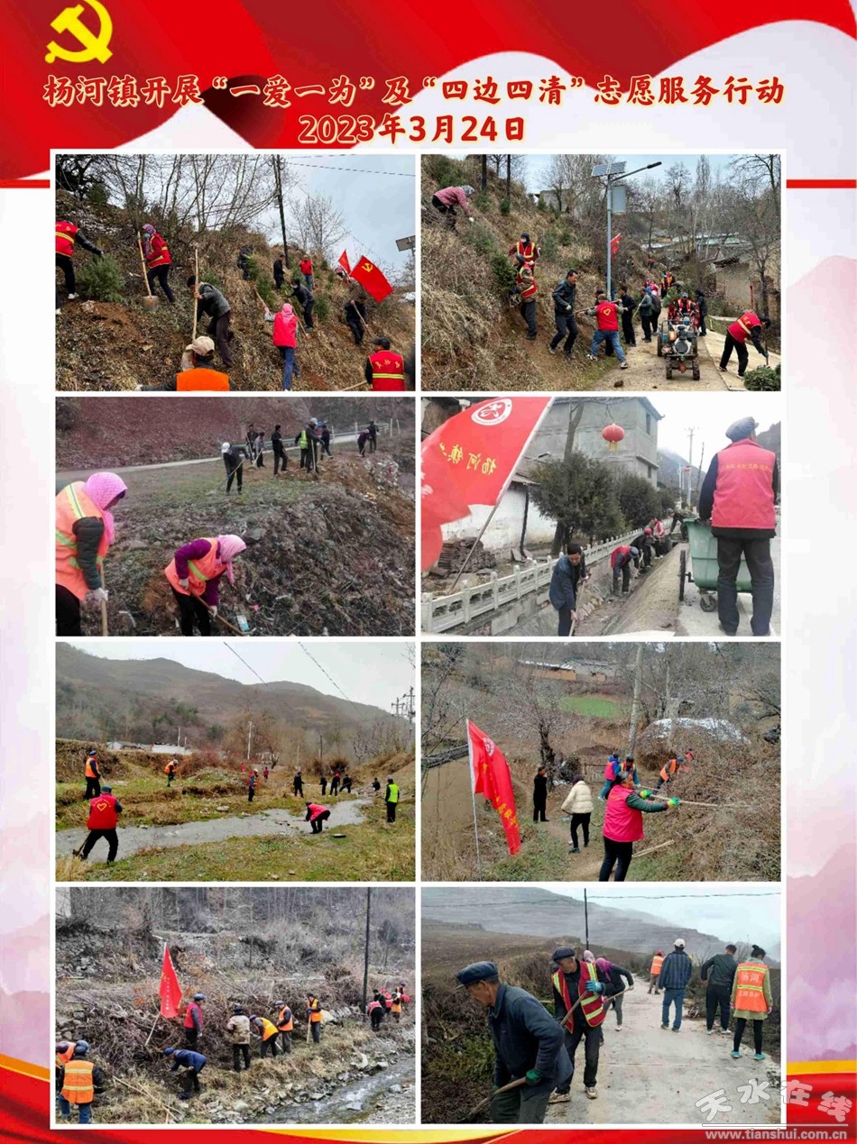 武山縣融媒體中心3月24日訊(記者 唐文斌)紙鳶紛飛燕齊舞 ,又見春分好時光。3月24日,武山縣各鄉(xiāng)鎮(zhèn)各部門各單位深入各自責(zé)任區(qū)域,組織干部群眾志愿者持續(xù)開展“一愛一為”“四邊四清”(即公路鐵路邊、河道邊、溝渠邊、村莊邊,清垃圾、清雜草、清堆物、清廣告)志愿服務(wù)活動,為廣大群眾提供干凈、整潔、舒適、美麗的居住環(huán)境。