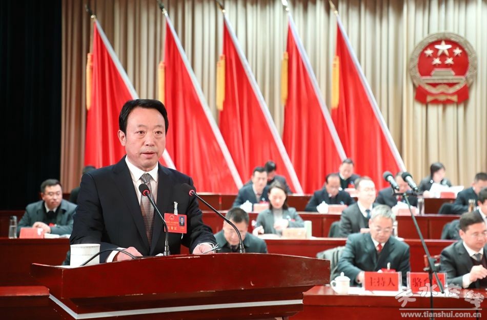 縣人大常委會(huì)主任孫德銀受縣第十八屆人民代表大會(huì)常務(wù)委員會(huì)委托作武山縣人大常委會(huì)工作報(bào)告。