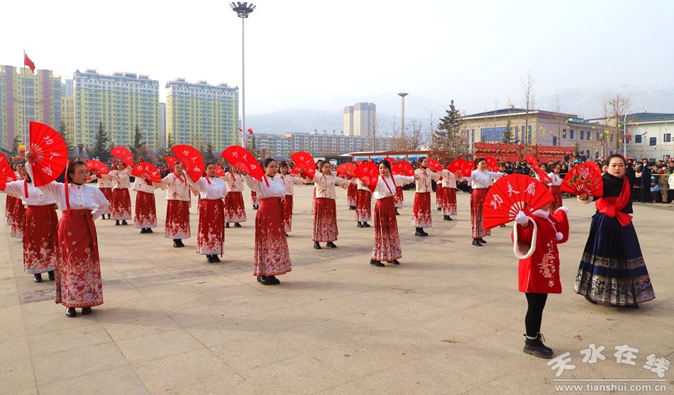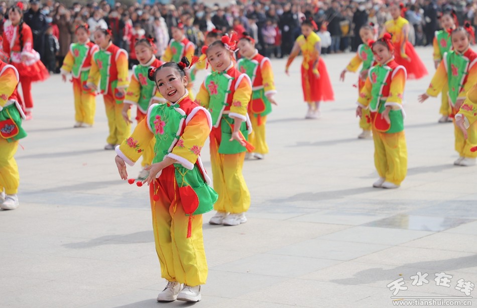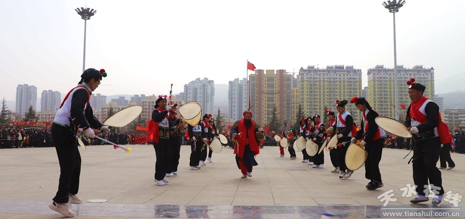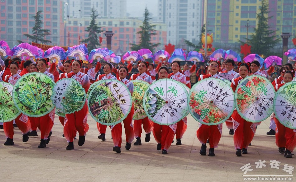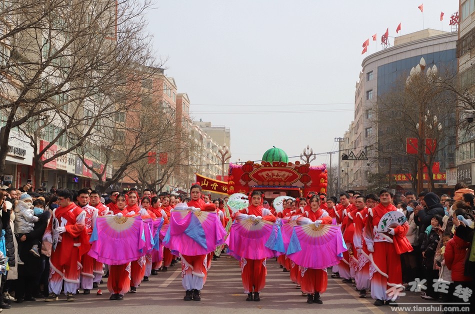 一支支表演隊(duì)精神抖擻,隆重登場(chǎng)。一時(shí)間,人民廣場(chǎng)鑼鼓喧天,彩扇飛舞,人頭攢動(dòng),熱鬧非凡。歡鬧的社火掀起了歡慶的高潮,喜慶的氣氛彌漫在縣城,形成正月里的狂歡盛典。