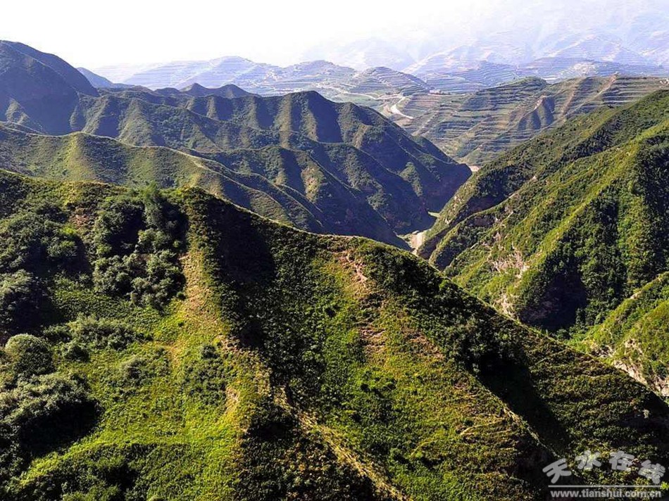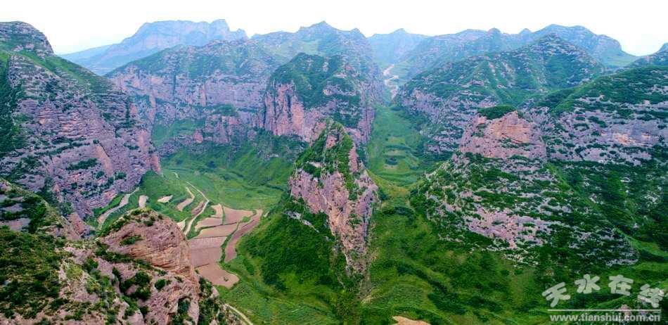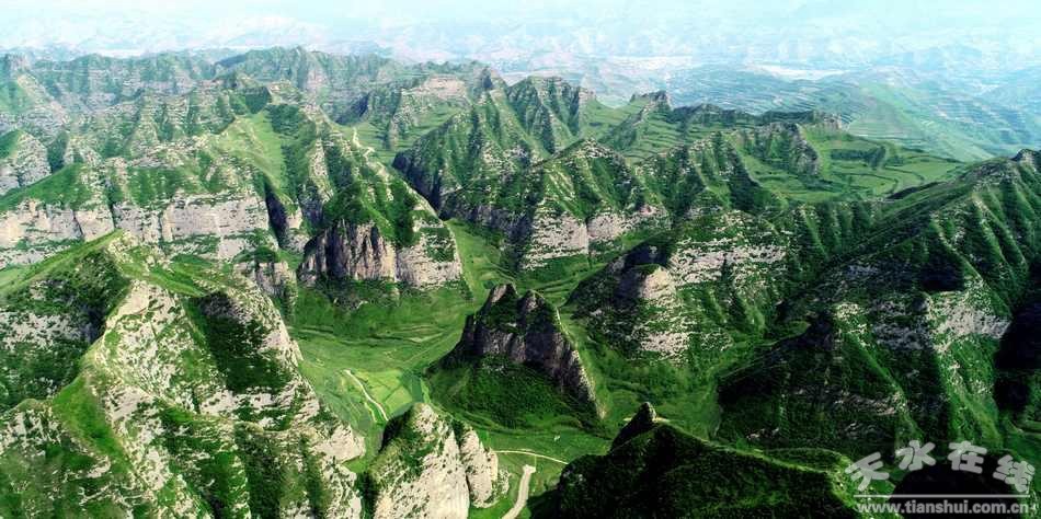 這是一座天然石窟,高數(shù)十丈,占地約百余平方米,庵前樹木森森,修竹芊芊,似一道綠色的簾子遮住了庵門。庵內(nèi)有大大小小石凳數(shù)十張,或黃或黑,或紅或白,均光滑細(xì)膩。四壁的裂縫里,是飛禽的樂(lè)園,成群的燕子,數(shù)不清的百靈鳥,還有那已不多見的麻雀,繞庵而鳴,與有人同樂(lè)。從大士庵南行數(shù)百米,沿蛇行小道,經(jīng)石棧,可至水簾洞。洞前有一廟宇,內(nèi)有姜維塑像,其形態(tài)逼真,親切可人。像前香火不絕,時(shí)有人祭祀。廟后的水簾洞中,溪水汩汩,晝夜奔流。在六月的艷陽(yáng)下,閃閃爍爍,明明滅滅,使人不忍離去。從水簾洞西行,可至姜維峰。這里有石井一處,相傳為當(dāng)年姜維飲馬處。從姜維峰遠(yuǎn)眺,藍(lán)天如洗,無(wú)邊無(wú)際,朵朵白云,仿佛是放牧在天空的羊群。黃土高原上那數(shù)不清的山山峁峁,波谷浪峰般涌向天際,給人以無(wú)盡的美感。